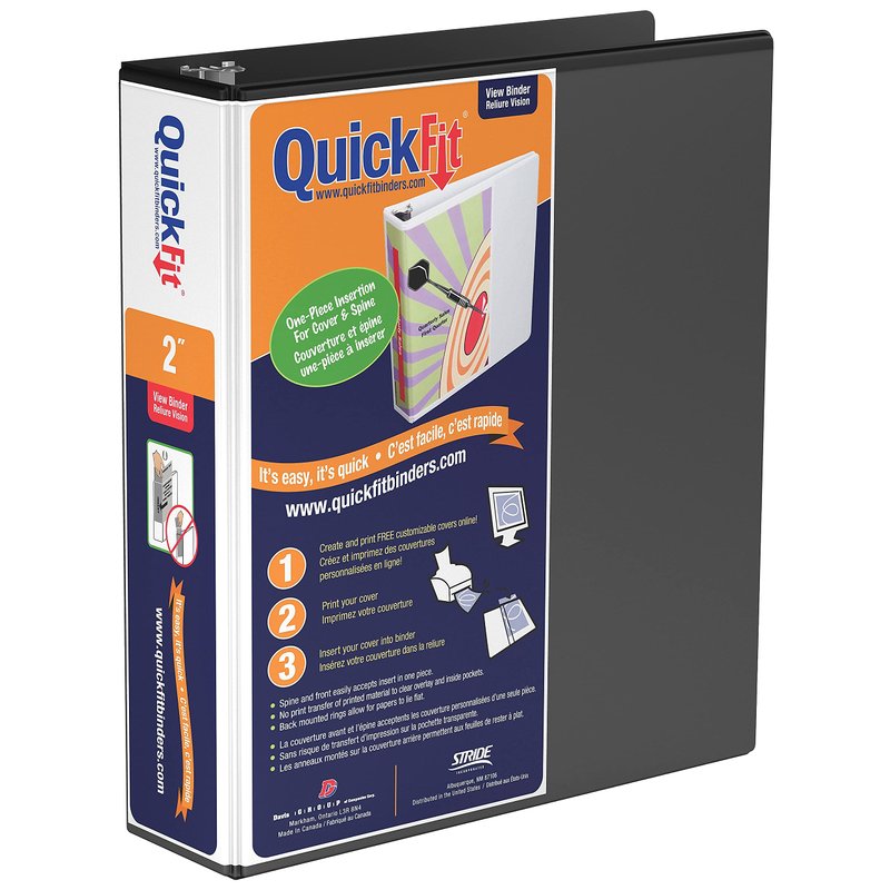 QuickFit View Binder, 3-Ring Binder, Angle D Ring, 2 Inch, Black,87031