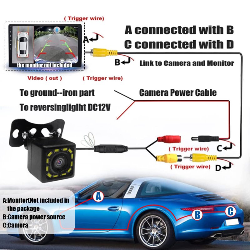 - HIGH QUALITY: Our reversing camera is made of high quality material, durable and can be used for a long time, with multiple copper wires and high quality aluminum alloy. Note: We only have camera + connection cable for this product, no monitor, if you have any questions, please feel free to contact us, we will reply you within 24 hours.