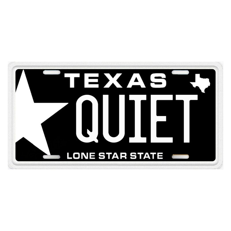 Quiet Any State Aluminum Car Vanity License Plate Tag Black and Gray