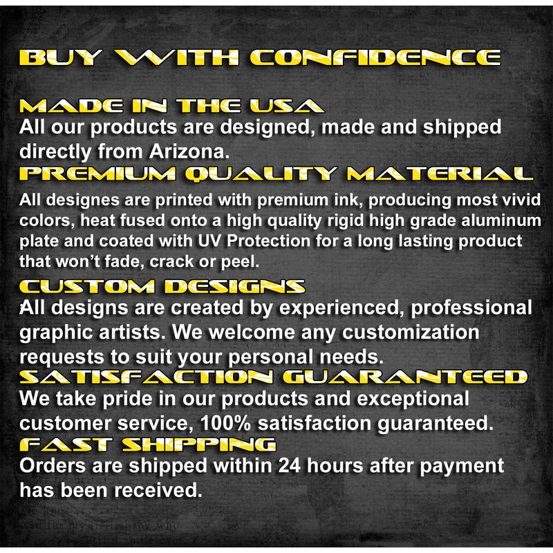 - Please note the designs are NOT embossed, meaning the art is NOT raised, it is printed flat on an aluminum plate.