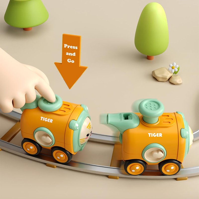 - 【Easy to Play】- This car toy set is designed with a simple structure, easy to operate, and easy to grasp. The baby can press the button on the top of the car to make the car move forward or backward, and the car will make a sound when it moves. The wheels are also rubberized, which is wear-resistant and not easy to slip.