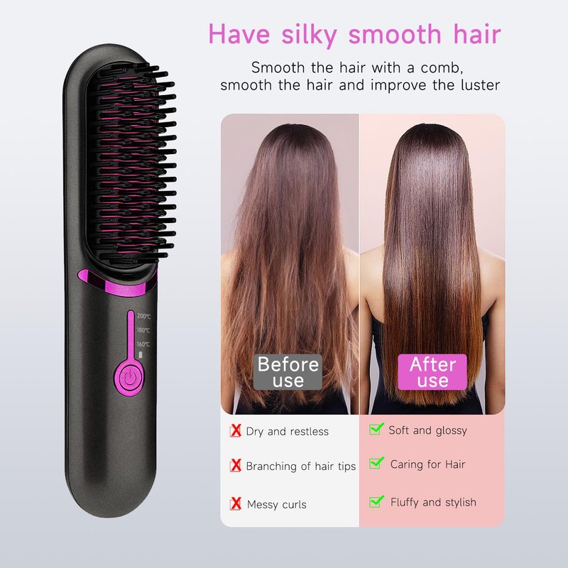 - 【30 Seconds Fast Heating and Straightening】: The hair straightening brush adopts ceramic coating heating technology, which is a professional way to provide fast heating, especially uniform heat distribution, it only takes 30 seconds to heat up to 200℃ , you can easily turn your curly hair into straight hair in just a few minutes. 160℃: Suitable for fine and soft hair, 180℃: Suitable for bleached and dyed hair, 200℃: Suitable for thick and thick hair, meeting your quick styling needs for any occasion.