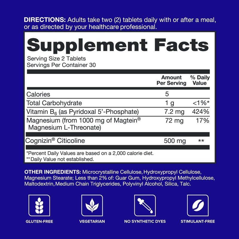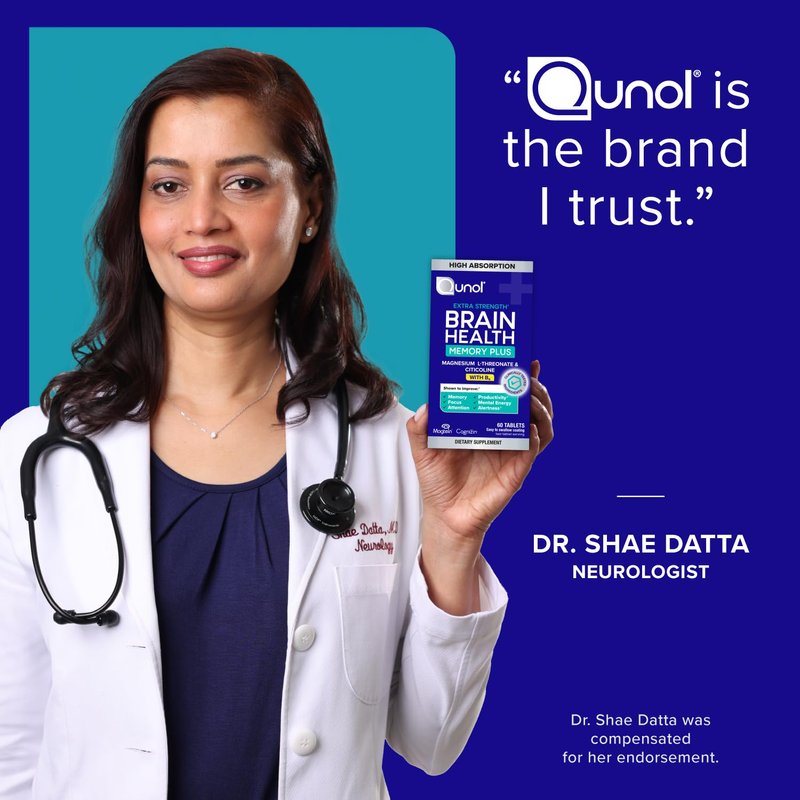 Qunol Brain Health Memory Plus with B6, Magnesium L-Threonate & Citicoline, Clinically Tested Ingredients to Improve Memory, Focus, Attention and Productivity, 60 Count (Pack of 1)