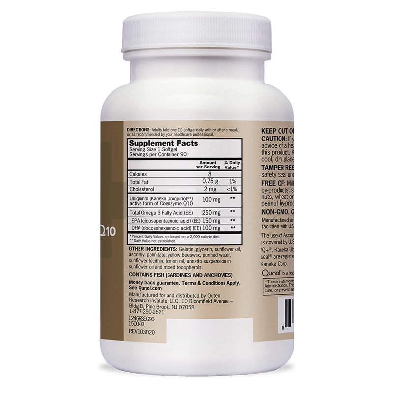 - SUPPORT HEART HEALTH: 100 mg of Ubiquinol, the active form of coenzyme Q10 (CoQ10) plus 250 mg Omega-3, an essential fatty acid. With Qunol Plus, you enjoy the benefits of these two doctor-recommended heart nutrients with a single daily dose