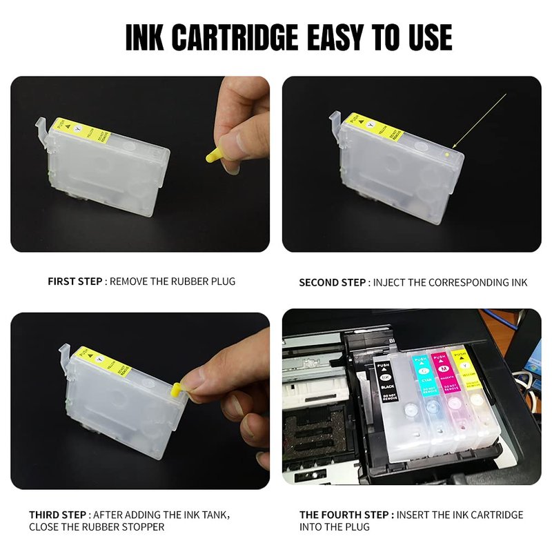 - ✍ WHAT YOU WILL GET: Package includes 4 x Empty Ink Cartridges (Black/Cyan/Magenta/Yellow). You can add many different types of inks, such as Dye Ink, Pigment Ink, Sublimation Ink and more.