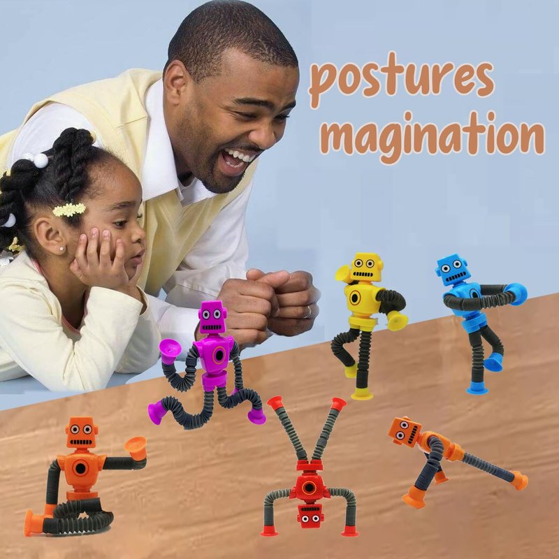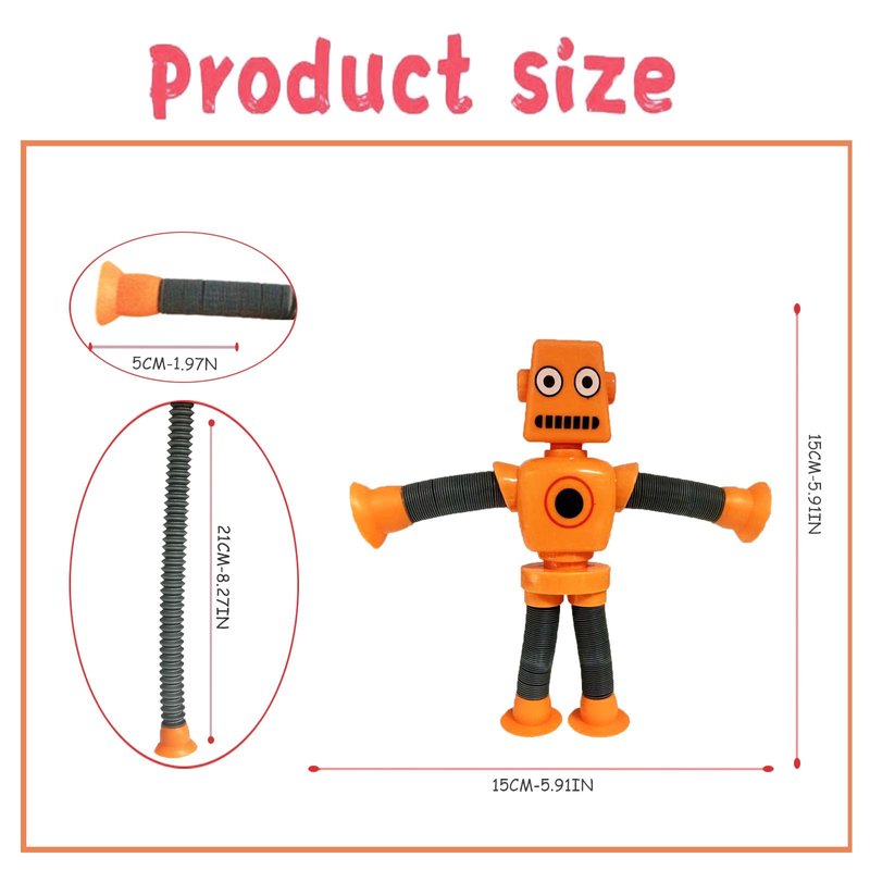 - 【 Easy to carry】robot suction fidget tubes sensory toy is also easy to clean and lightweight, making it an ideal companion for playtime on-the-go. Its bright colors and adorable shape are sure to capture children's attention and spark their creativity