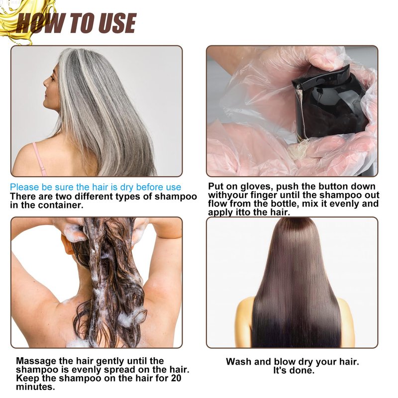- Easy to Use at Home - No bowl or brush needed. Just put on the provided plastic gloves, apply the shampoo on your hair, massage for 5-10 minutes, and rinse well. You'll get the black hair you want, saving time and money