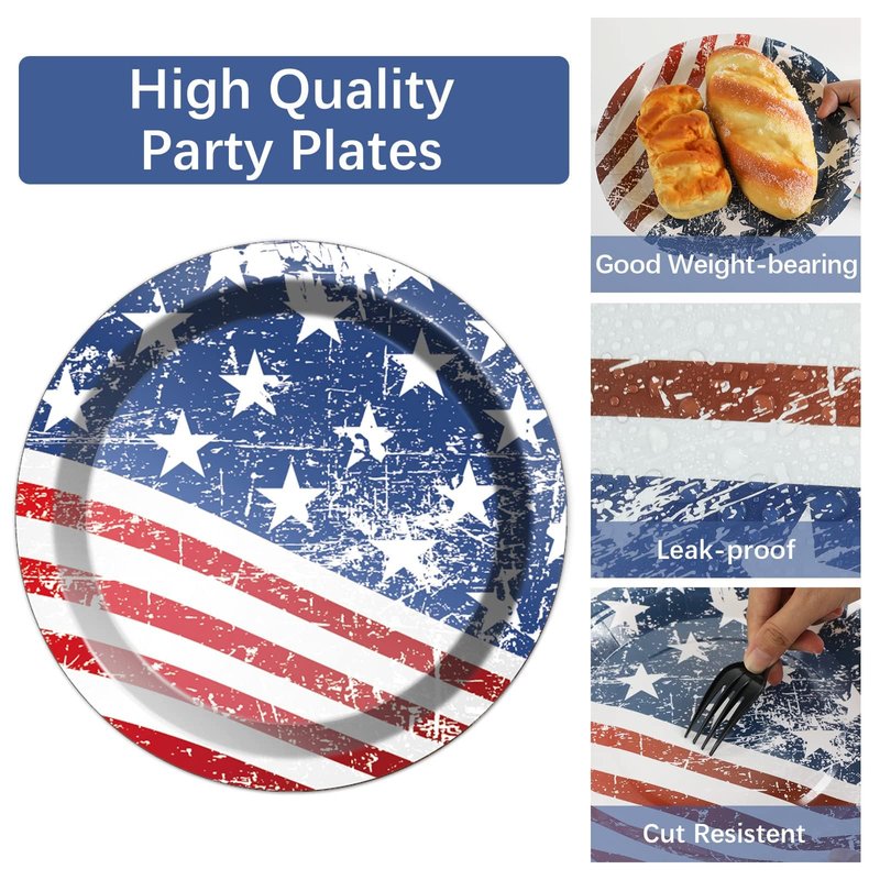 - 【4th of July Party Tableware Set】100 pieces patriotic party dinnerware set, including 50 paper plates of two sizes, 25 American Flag birthday napkins, and 25 forks. This set includes everything you need for up to 25 guests, making it the perfect choice for your 4th of July birthday party.