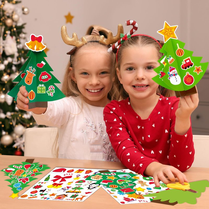 - 【Easy to Use】 The operation of Christmas tree DIY is also very simple for children. Stick sticker ornaments on basic cards to create your own Christmas tree ornament that look great to hang on your tree or standing on the table, Christmas craft kit ornaments hanging art can also be used as a party game activity to get everyone everyone enjoy the fun of crafting.