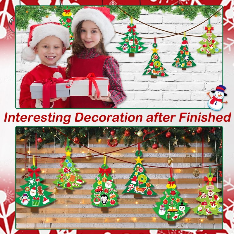 - 【Easy to Use】 The operation of Christmas tree DIY is also very simple for children. Stick sticker ornaments on basic cards to create your own Christmas tree ornament that look great to hang on your tree or as bookmarks, Christmas craft kit ornaments hanging art can also be used as a party game activity to get everyone everyone enjoy the fun of crafting.