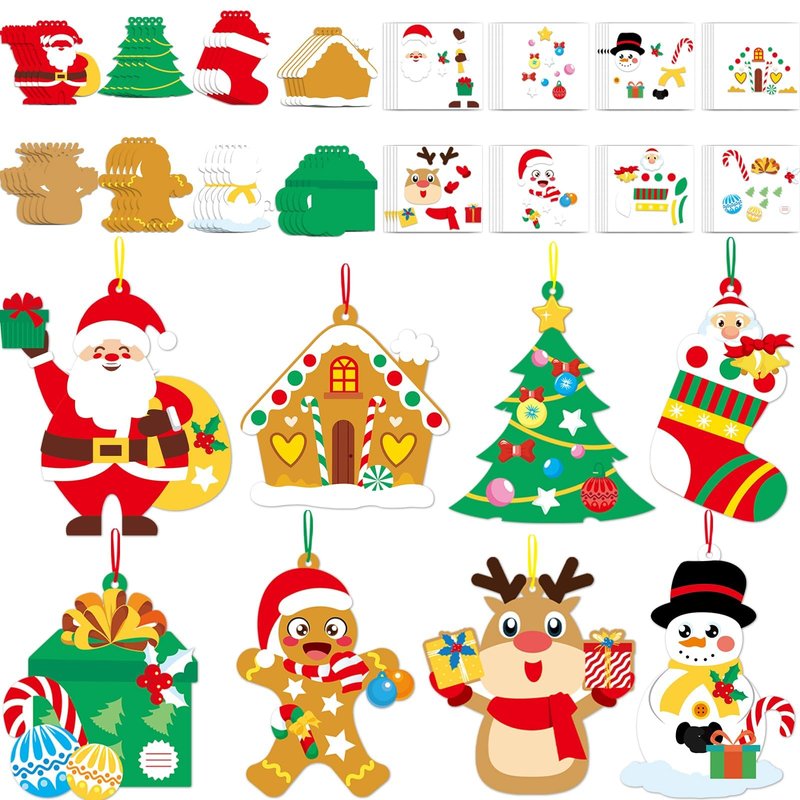 - 【Get Ready for Christmas】Bring the Christmas spirit to your home with our Christmas craft kit! The pack includes 64 craft kits in 8 delightful designs featuring Christmas trees, snowmen, gingerbread houses, and more. Each kit comes with colorful stickers and long strings for easy hanging and decorating, enabling you to create unique holiday art pieces. With this craft kit, your Christmas decorations will surely stand out.