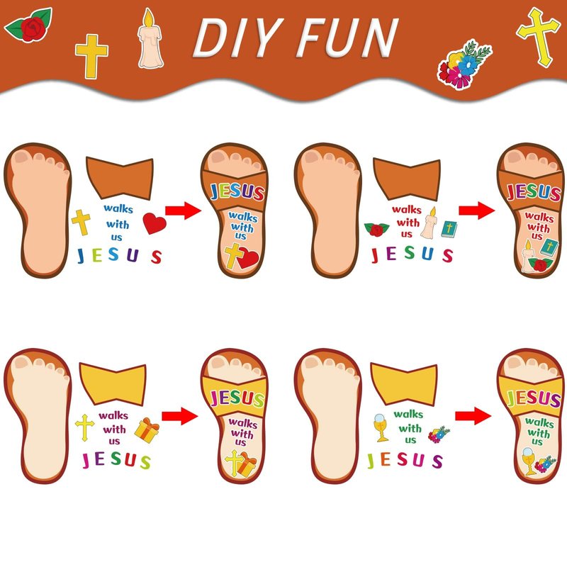 - 【rainbowular Craft for Kids】Try some fresh Jesus religious craft games with your kids! Just encourage kids to make there own Jesus slippers with these simple and fun card and sticker activities.These Jesus walks with us religious craft kits can help to create a jesus atmosphere and joy.