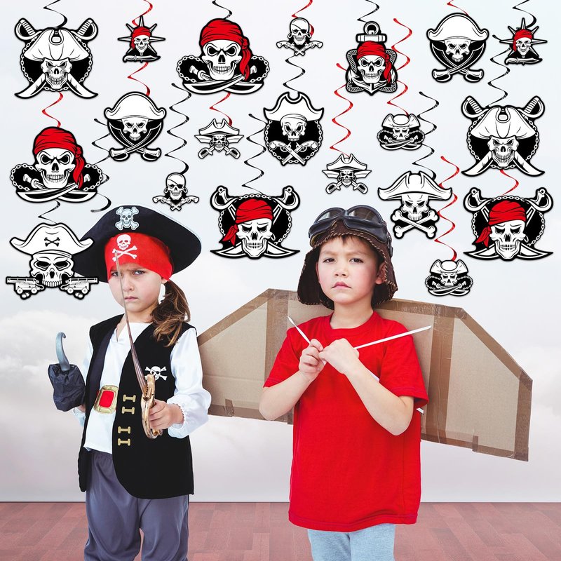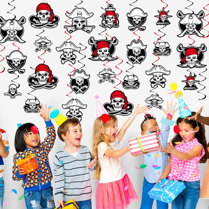- Widely use: This pirate streamer for ceiling set can be applied for pirate theme party favor supplies, kids birthdays photo props, sailing party, Caribbean theme party, family gathering and more.