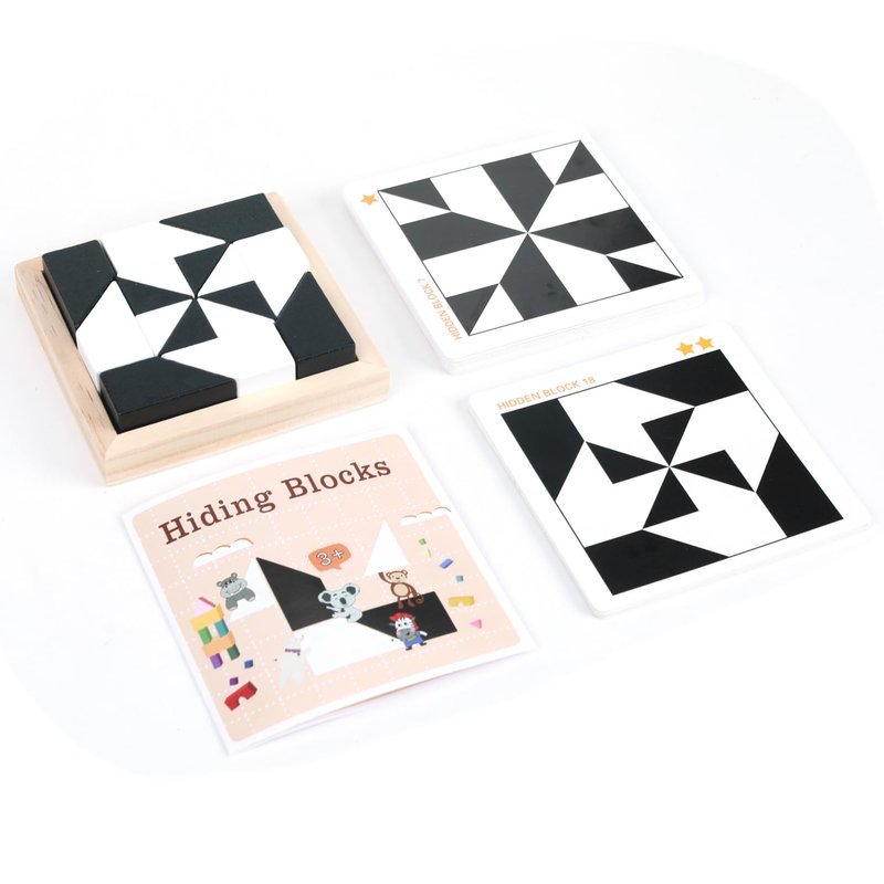 - 【Table Logic Game for Kids】 - Set up the brain puzzles for kids as shown on the Flash cards, the goal is to put the white and black blocks to form the patterns. Although there are only two colors and two shapes of building blocks, there are different ways to complete a pattern through hiding blocks. How To Hide is this IQ toy's challenge. This is the uniqueness of our brain teasers toy.