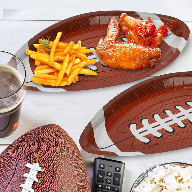 - Football Shape Design - Our football party supplies feature football shape and color, great Super Bowl party supplies for creating atmosphere for your Super Bowl 2024 party.