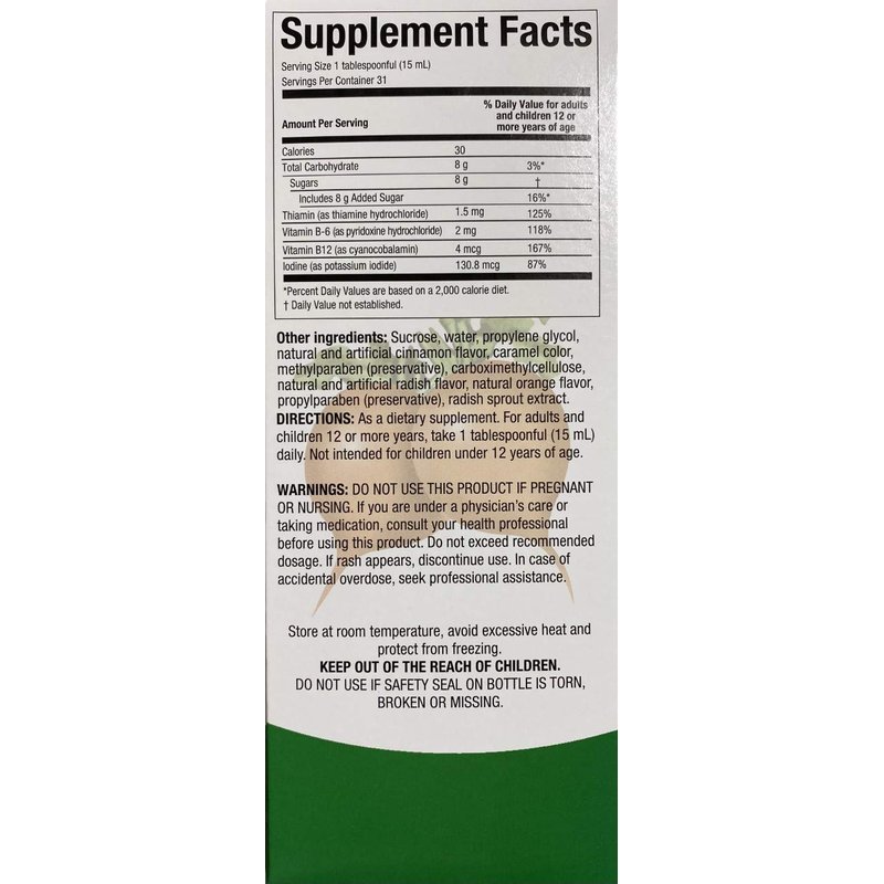 Rabano Yodado Liquid 16 Fl Oz. - Bonus Size - Supplement Vitamin B12, B6 and Thiamin (1 Month Supply)