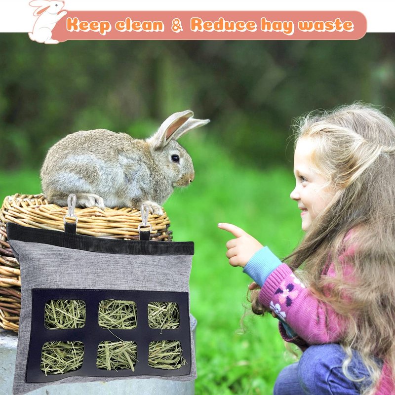 Rabbit Hay Feeder Bag, Upgraded Bunny Guinea Pig Hay Feeder, 600D Oxford Fabric Hay Holder for Small Animal Rabbit Guinea Pig Chinchilla Cage