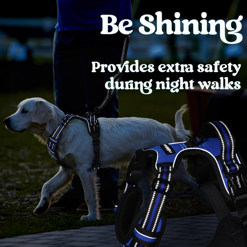 rabbitgoo Upgraded Dog Harness with 3 Buckles - Designed for Your Dog, and You. Every day, a lot of energetic and active dogs yearn to go outside and explore the outdoors, meet new furry friends, and be excited about nature. However, the dog might feel uncomfortable when the harness is placed over its head. To make wearing the dog harness easier and more comfortable, we have carefully created an improved version with three buckles, including an open buckle at the neck. There is an extra lockable red button on the buckle to ensure the buckle will not get released easily. By fastening the leash to the Front Clip of our harness, you can better control your dog thanks to its No-Pull Design. Your dog turned around every time he or she pulled, refusing to go forward and tug on the leash. Your dog will learn not to pull in no time. Encouraging walks will be enhanced because your dog will feel safe and comfortable while wearing them thanks to the soft, breathable padding that fits snugly around their entire body. Because we only used the best materials to make our harness, your dog will look amazing wearing it. Your outdoor journey with your pet becomes pure joy day or night when you use the Rabbitgoo Safety Dog Vest Harness.