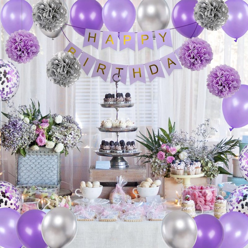 - Purple Birthday Decorations for Her : Lavender purple decor is suitable for women and girls of most ages. It look romantic and mysterious after assemble, your families, friends will have a unforgettable memories!