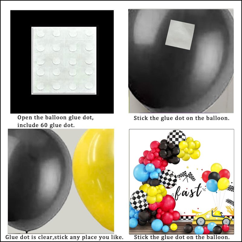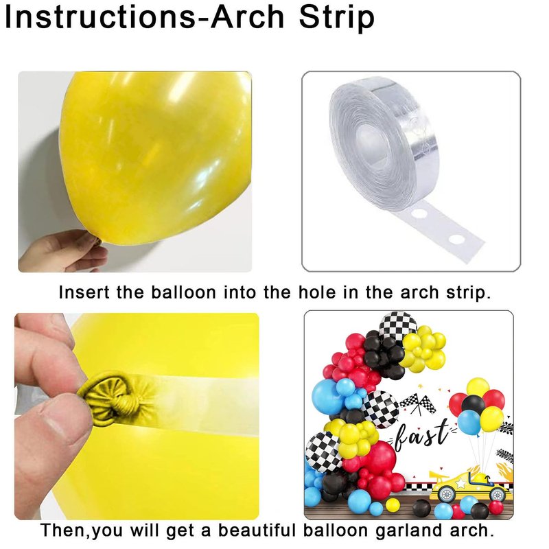 - Easy Diy:The race car balloon arch is very easy to assemble, just inflate the balloons, then stuff the knot into the hole of the balloon arch chain. You can hang them on trees, walls, windows, doorways, dining tables and anywhere you like. It will be a funny family craft to Diy with your family! Hope you enjoy the fun of Diy.