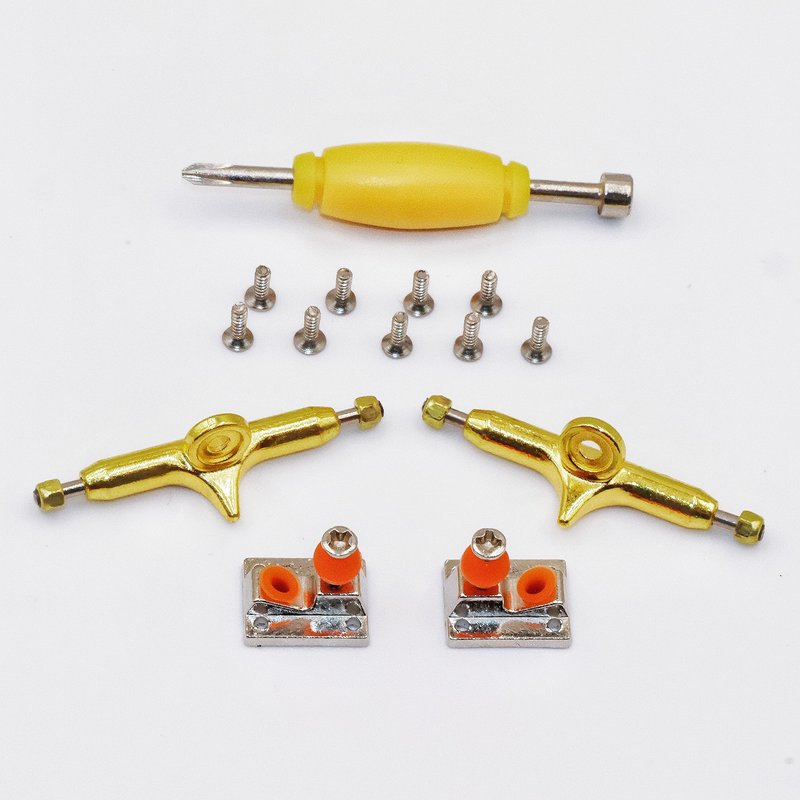 - 1 set including 2 fingerboard trucks,4 gold locknuts(assembled already), 9 screws and 1 screwdriver
