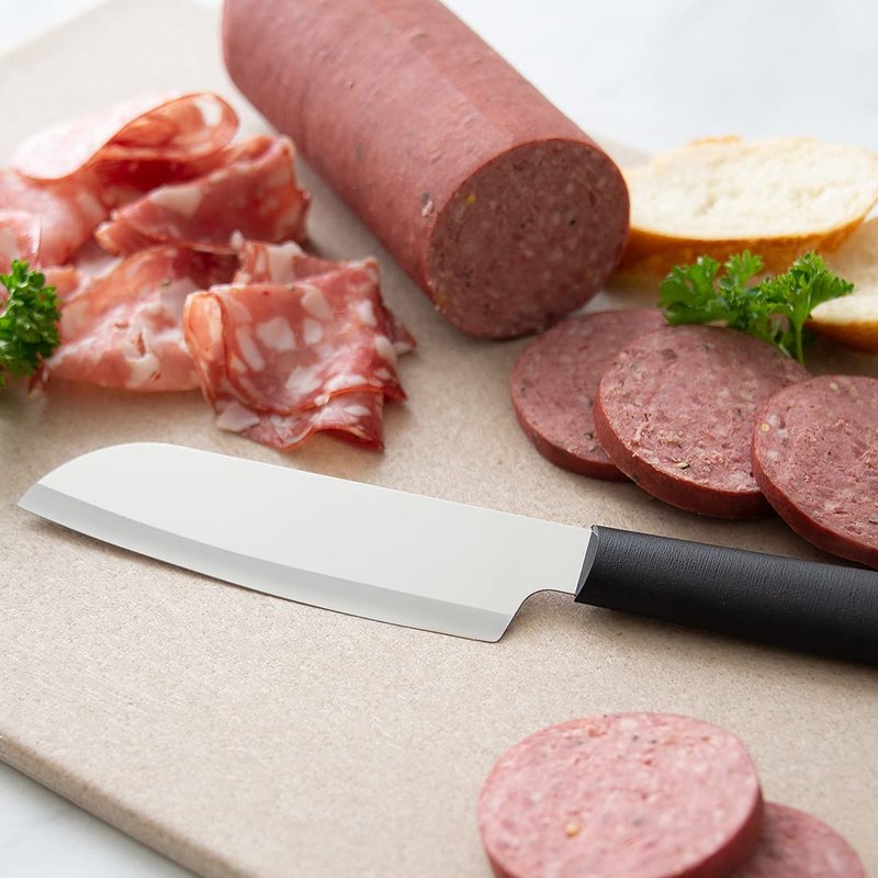 - DISHWASHER SAFE HANDLE - The handle on this utility knife is comprised of a black stainless steel resin that can be washed in the dishwasher. Hand washing fine cutlery is recommended but the handle on this knife is dishwasher tolerant.
