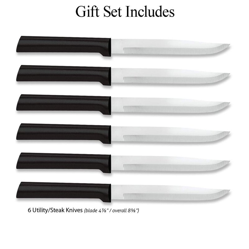 Rada Cutlery Utility Steak Knives Gift Set Stainless Steel Knife Made in the USA, Set of 6, Black Handle