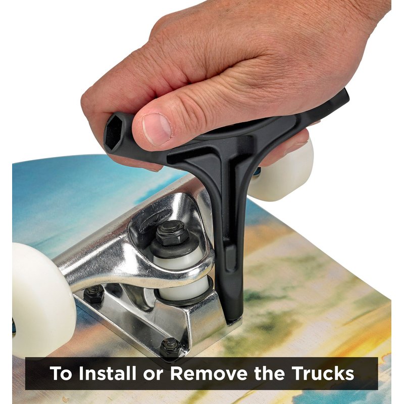 - VERSATILE: The 3/8”, 1/2” and 9/16” sockets allow you to adjust any type of skate hardware, trucks or wheels on the go.