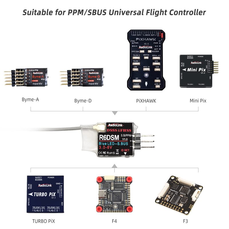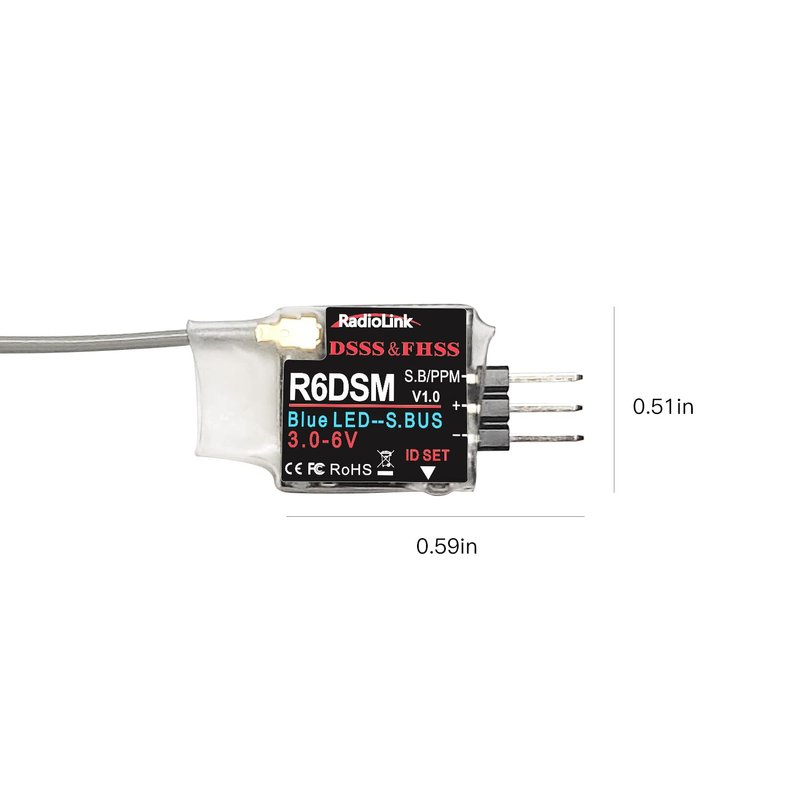 Radiolink R6DSM 2.4Ghz 10 Channels Micro RC Receiver SBUS/PPM for Mini FPV Racing Drone, Quadcopters Aircraft, AT9S AT9S Pro/AT10/AT10II Transmitter