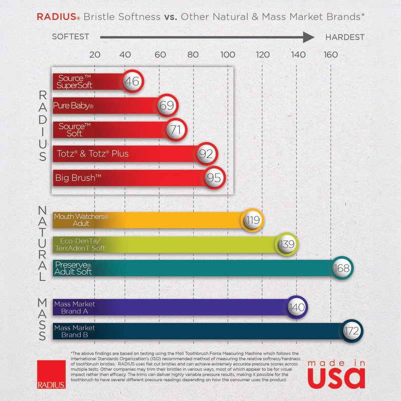 - SUSTAINABLE FROM TOP TO BOTTOM: Paired with the RADIUS Big Brush plant based handle that is biodegradable in landfills and recyclable and a replacement head with plant based bristles leaves the planet as clean as your teeth.