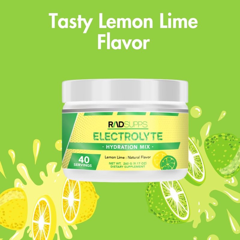RADSUPPS - Electrolyte Hydration Mix - Premium Electrolytes Powder – No Sugar Hydration Powder - Electrolyte Drink Mix for Optimal Hydration and Recovery (40 Servings) (9.17oz, Lemon Lime)