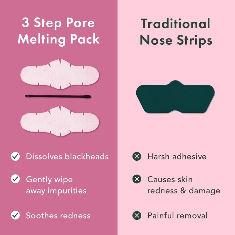 - K-BEAUTY TECHNOLOGY: Unlike traditional nose strips that damage skin, the 3-Step Pore Melting Pack utilizes K-Beauty Technology to soften and extract blackheads without ripping them out