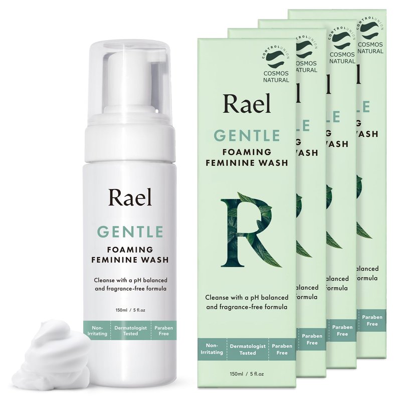 Rael Feminine Wash, Foaming Cleansing Wash - pH Balance Intimate Wash Women, Uscented, Sensitive Skin, All Skin Types, Vegan, Cruelty Free (5oz, 4 Pack)