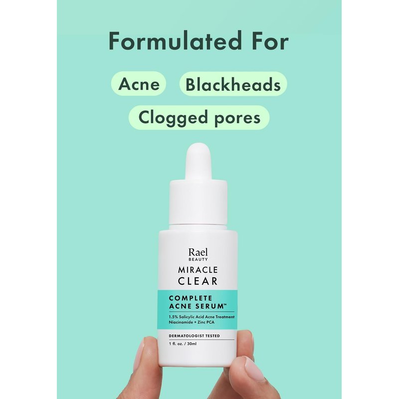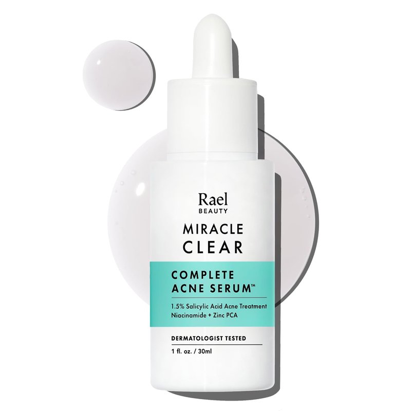 Rael Serum for Face, Miracle Clear Complete Acne Treatment - 1.5% Salicylic Acid, 2% Niacinamide, 0.5% Zinc, Pore Minimizer, Even Skin Tone, Korean Skincare (1oz, 30ml)