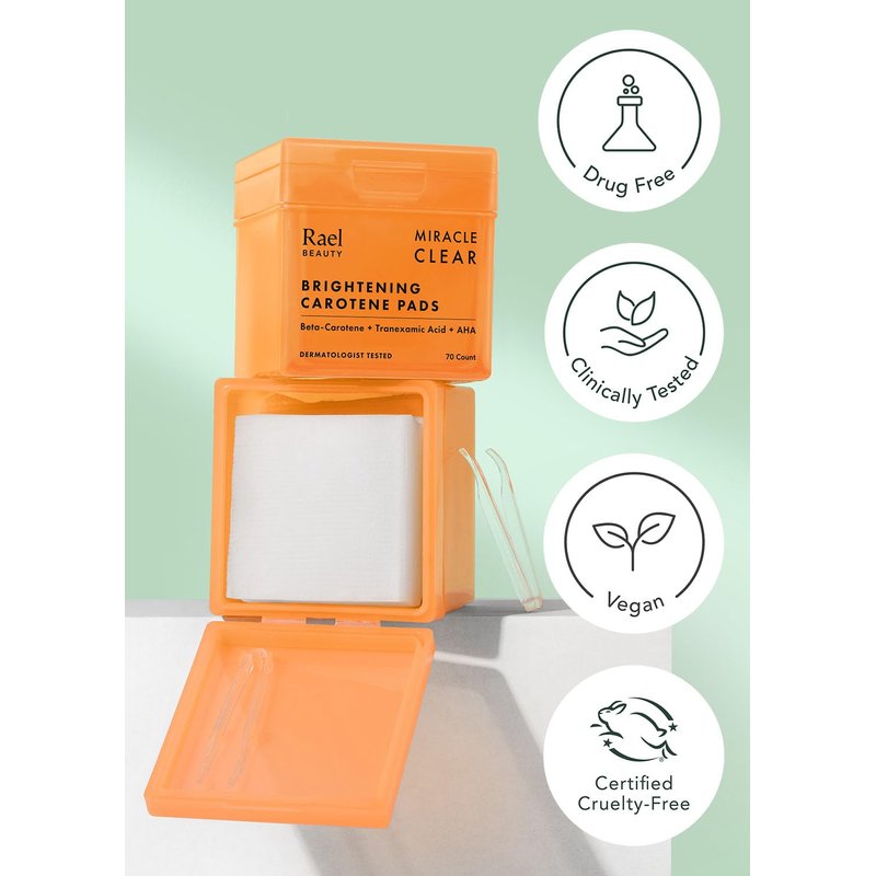 Rael Toner Pads - Cotton Pads for Face, Dual Textured with Carotene, AHA, Niacinamide, Hyaluronic Acid, Facial Radiance Pad, Exfoliating, Hydrating, Korean Skin Care, Vegan (70 Count)
