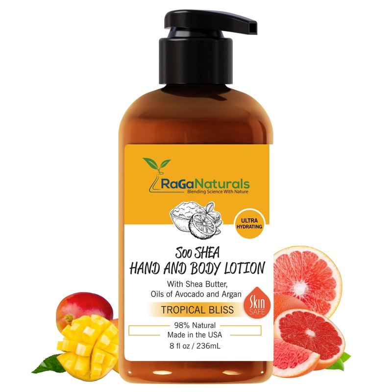 RaGaNaturals Mango Shea Butter Tropical Bliss Lotion with Argan, Vitamin E, and Avocado Oil - Refreshing, Hydrating and Nourishing 8 Fl Oz Moisturizer