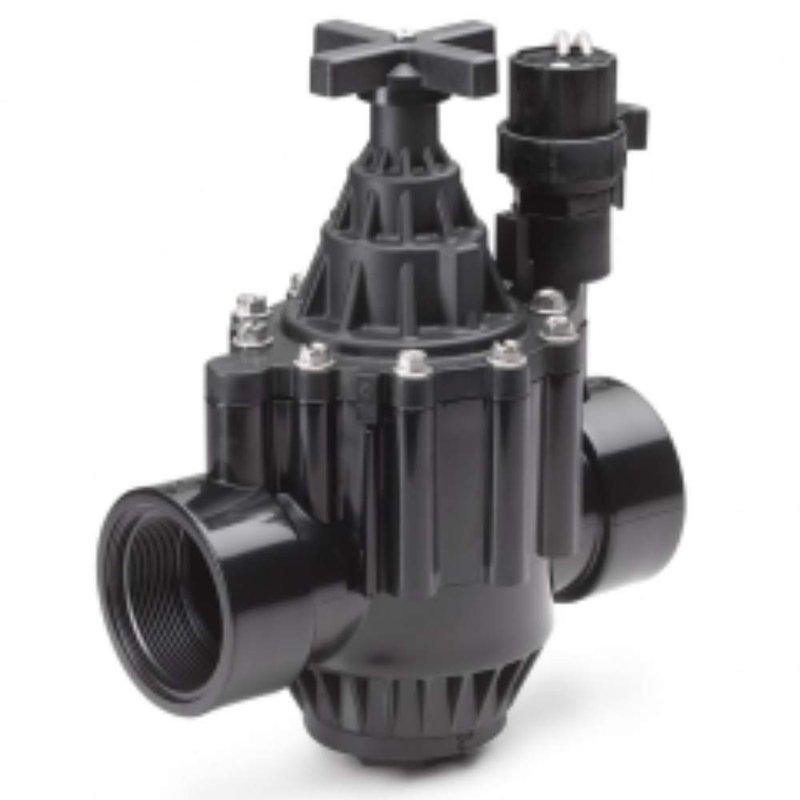 Product Information:The PGA Series offers versatility at an affordable price. Plastic globe/angle valve for residential/light commercial irrigation applications.Options (order separately)Accommodates field installed PRSD pressure regulating module to ensure optimum sprinkler performance. Regulates up to 100 psi (6,90 bar). Purple flow control handles for easy identification of nonpotable water systems. Models: PEBNPHAN1 (1") and PEBNPHAN2 (1 1/2" and 2"). Accepts latching solenoid for use with Rain Bird batteryoperated controllers up to 150 psi (10,35 bar). Features:#149; Globe and angle configuration for flexibility in design and installation#149; Rugged PVC construction for reliable operation#149; Normally closed, forward flow design#149; Doublefiltered pilot flow to resist debris and clogging of solenoid ports#149; Slow closing to prevent water hammer and subsequent system damage#149; Manual internal bleed operates the valve without allowing water into the valve box. Allows pressure regulator to be adjusted without turning the valve on at the controller#149; Onepiece solenoid design with captured plunger and spring for easy servicing. Prevents loss of parts during field service. Specifications:#149; Model: 150PGAOperating Range#149; Pressure: 15 to 150 psi (1,04 to 10,35 bar)#149; PRSD regulates up to 100 psi (6,90 bar)#149; Flow: 2 to 150 gpm (0,45 to 34,05 m/h; 7,8 to 568 l/m)#149; Flow with PRSD option: 5 to 150 GPM (1 to 34 m3/h; 0,32 to 9,44 l/s)#149; Temperature: Up to 110 F (43 C)#149; 24 VAC 50/60 Hz (cycles per second) solenoid power requirement#149; 0.41 A (9.8 VA) inrush current; 0.28 A (6.7 VA) holding current#149; Solenoid coil resistance: 24 Ohms, nominal