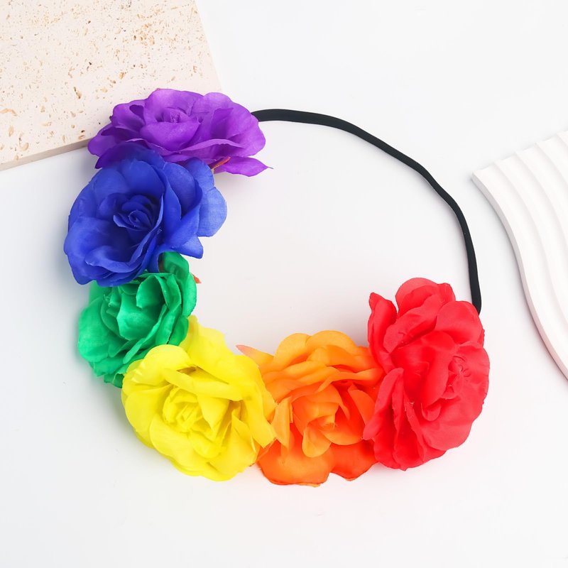 - Quality Materials: The rainbow flower headband is made from soft fiber material with black elastic ribbon. The flowers are fixed on the elastic band rope firmly. Elegant and generous.