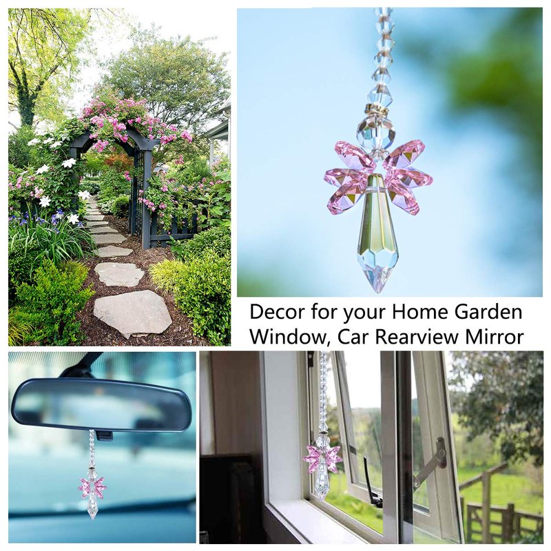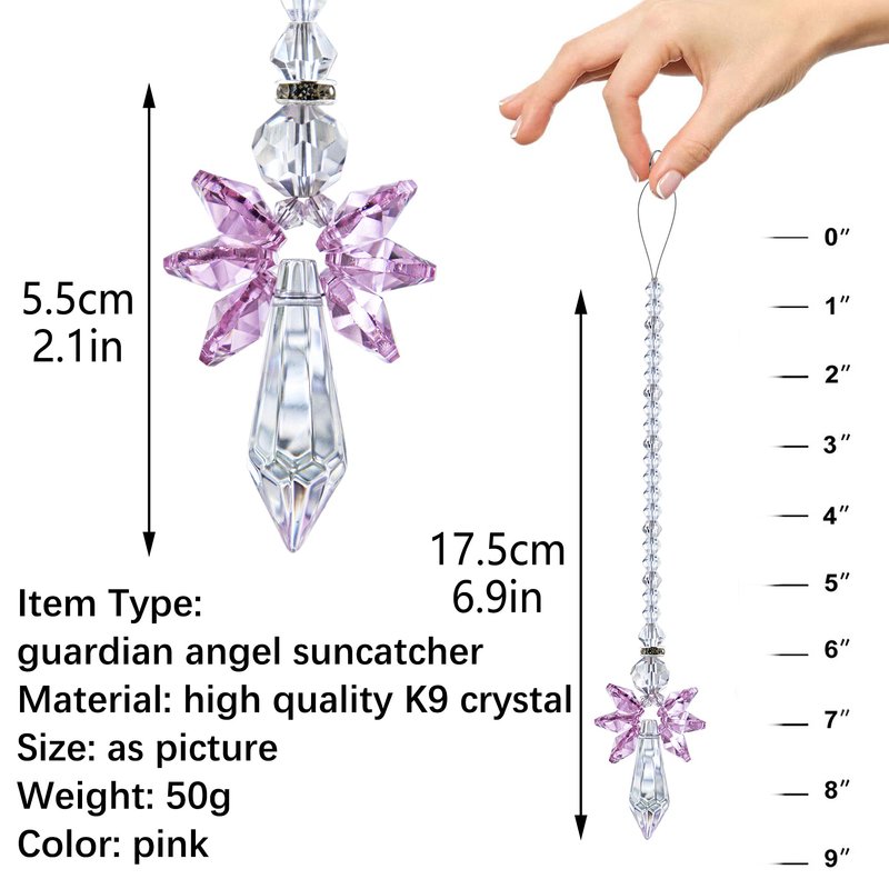 Rainbow Guardian Angel Crystal Suncatcher as Home/Car Decoration & Porch Decor & Hangings Crystal Glass Ornament (Pink)