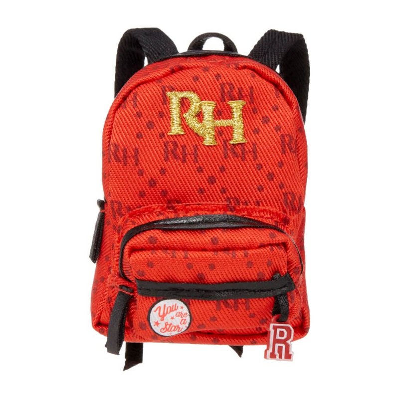 - SCHOOL ESSENTIALS: Ruby has been creative at a young age. She’s always loved to find new ways to style old favorites. No surprise, her custom backpack is fire. She comes with a soft fabric red backpack that opens and closes with a custom designed patch and RH gold embroidery. Perfect accessory to store her sparkle satin scrunchie, two gold hair clips, and R necklace.
