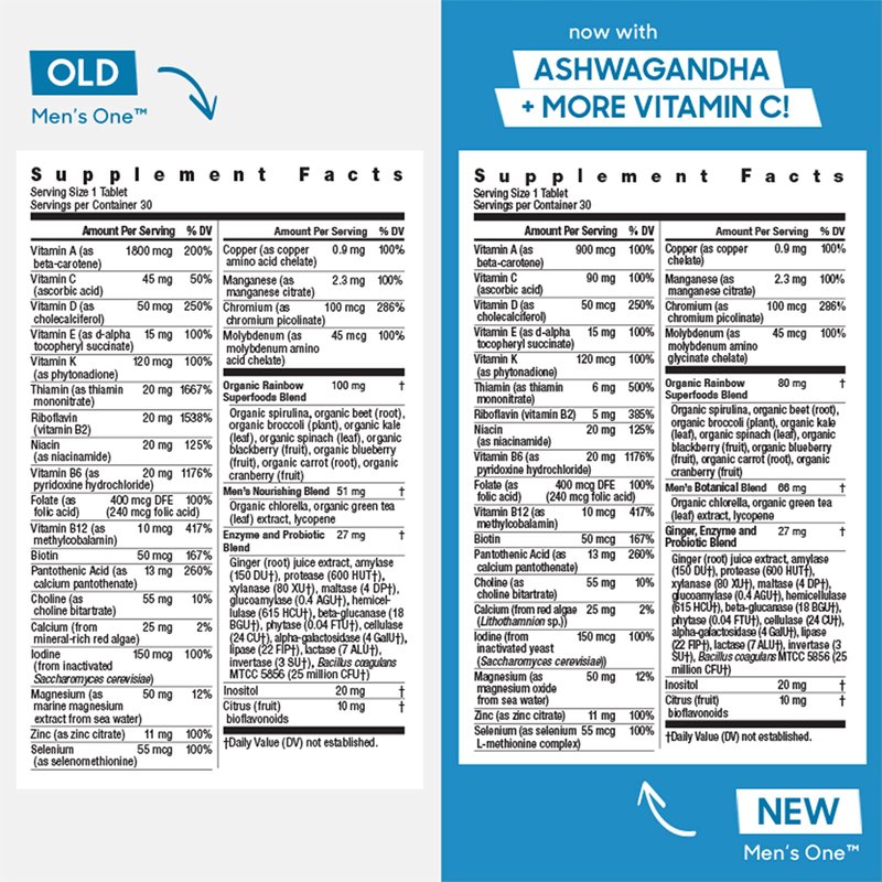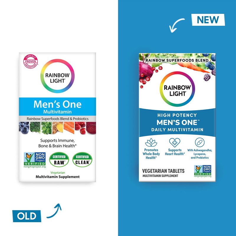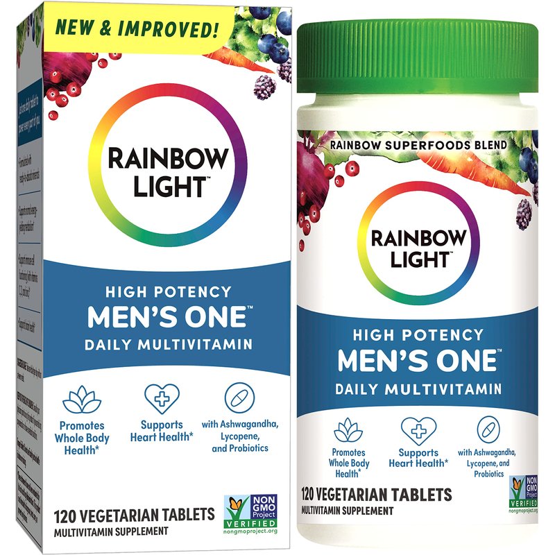 - MEN’S MULTIVITAMIN: Includes one 120-count bottle of Rainbow Light Men's One High-Potency Men's Daily Multivitamin, a multivitamin supplement for men that promotes immune, heart and brain health