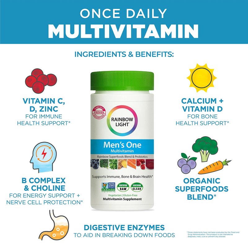 Rainbow Light Multivitamin for Men, Vitamin C, D & Zinc, Probiotics, Men's Multivitamin Provides High Potency Immune, Heart, & Liver Support, Non-GMO, Vegetarian, 120 Tablets