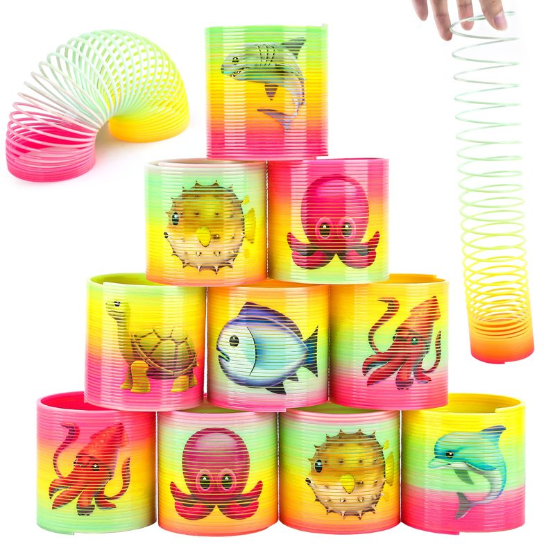 Rainbow Magic Spring, 12Pcs Colorful Plastic Springy Toys Fidget Toys Walking Toy Circle Shaped Coils Party Favors Gift Stocking Stuffers for Boy Girl Children Kids (Ocean Animal)