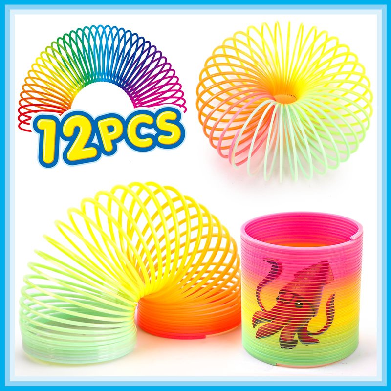 - 【What You Will Get】The rainbow spring toy is 2.36(Diameter) x 2.36(Height) inches, it's half-palm size with an colorful gift box. Every set comes with 12 coil spring toys to give you enough to play around, stretch out these colorful springs and watch them will snap right back, and enjoy endless fun.