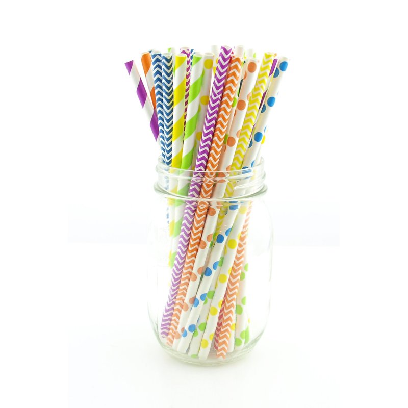 Rainbow Party Straws, Wedding Candy Buffet Straws, Fancy Drinking Straws, Kids Party Paper Straws, 75 Pack - Rainbow Color Multi Design Straws