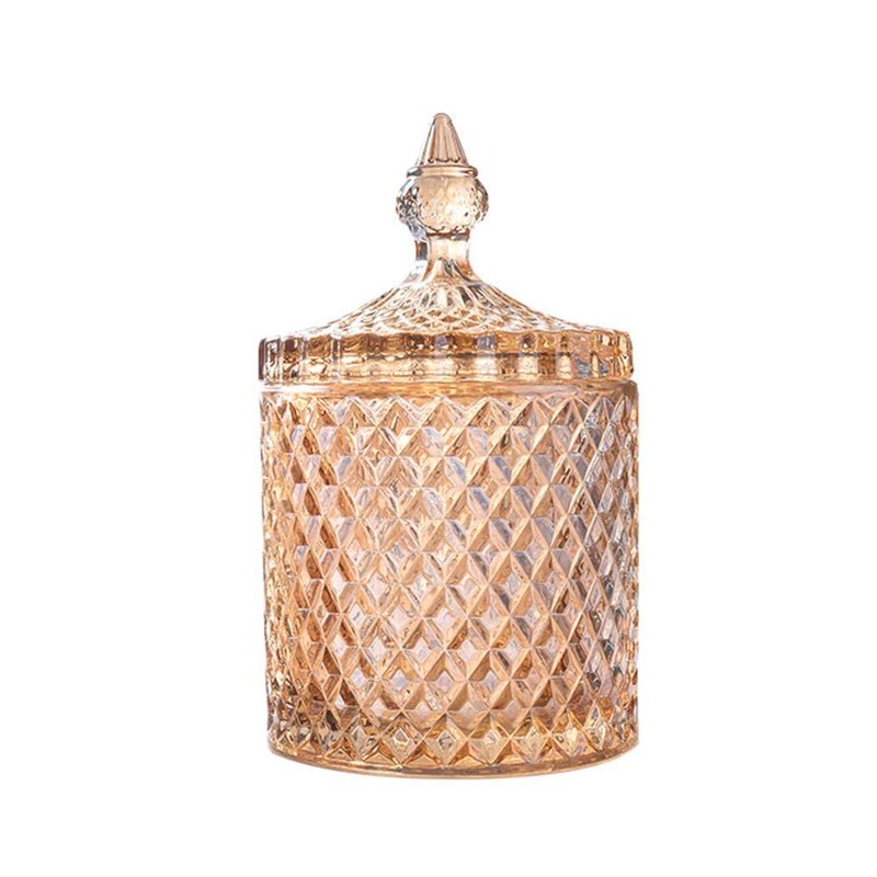 Rainie Love Home Basic Food Storage Organization Set-Crystal Diamond Faceted Jar with Crystal Lid,Suitable as A Candy Dish,Cookie Tin,Biscuit Barrel,Decorative Candy Jar (Amber, 16 oz)