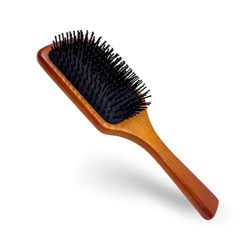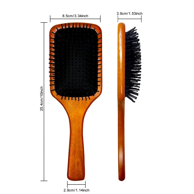 - 2.Soft and comfortable air cushion is designed for scalp massage, a treat both women and men will appreciate .Natural wooden handle is made friendly to both user and environment.With nylon round comb teeth can better untangle hair strands, massage the head at the same time, increase blood circulation, stimulate follicles, make hair stronger and healthier growth.