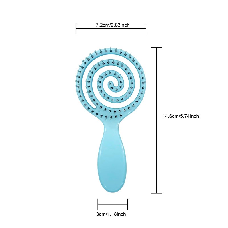 Brand:RAIN’S SECRET Name:Lollipop Shaped Mini Detangler Hair Brush Material:Plasic Color:Blue Function:massage to relax scalp, enhance hair growth; less heat and chemical products; less damage, less wash, less dandruff. More softness, shine & health.