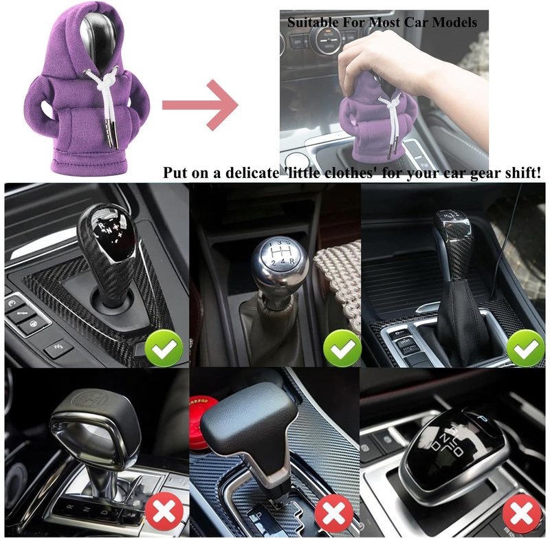 - 【Fashionable Car Accessories】Put on a delicate 'little clothes' for your car gear shift! Our latest car gear shift knob cover is designed with cute hoodie. It transforms your gear lever into a vivid mini character image, holding its head high, showcasing its existence to your loved ones and friends.