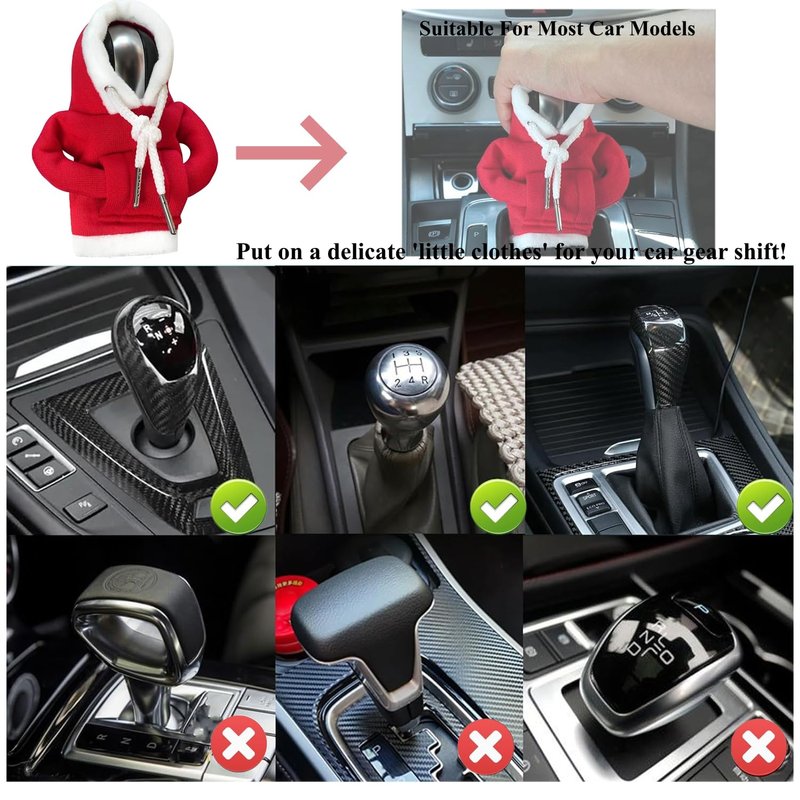 - 【Fashionable Car Accessories】Put on a delicate 'little clothes' for your car gear shift! Our latest car gear shift knob cover is designed with cute hoodie. It transforms your gear lever into a vivid mini character image, holding its head high, showcasing its existence to your loved ones and friends.
